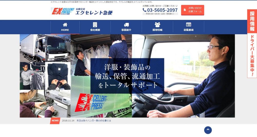 今までは、「ハンガー車.com」や「アパレル物流.com」と新規荷主開拓のためのマーケティングサイトでしたが、今度は求職者向けの採用情報を充実させてコーポレートサイトをリニューアルしました。