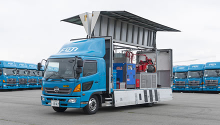 松岡社長:どのメーカーもマルチの対応ができる車というのは発売していません。ですからメーカーさんと相談して、また、トラックの上に載っているボディーメーカーとも相談しながら、さまざまなお客様の要望に沿うマルチの車をどんどん作りました。