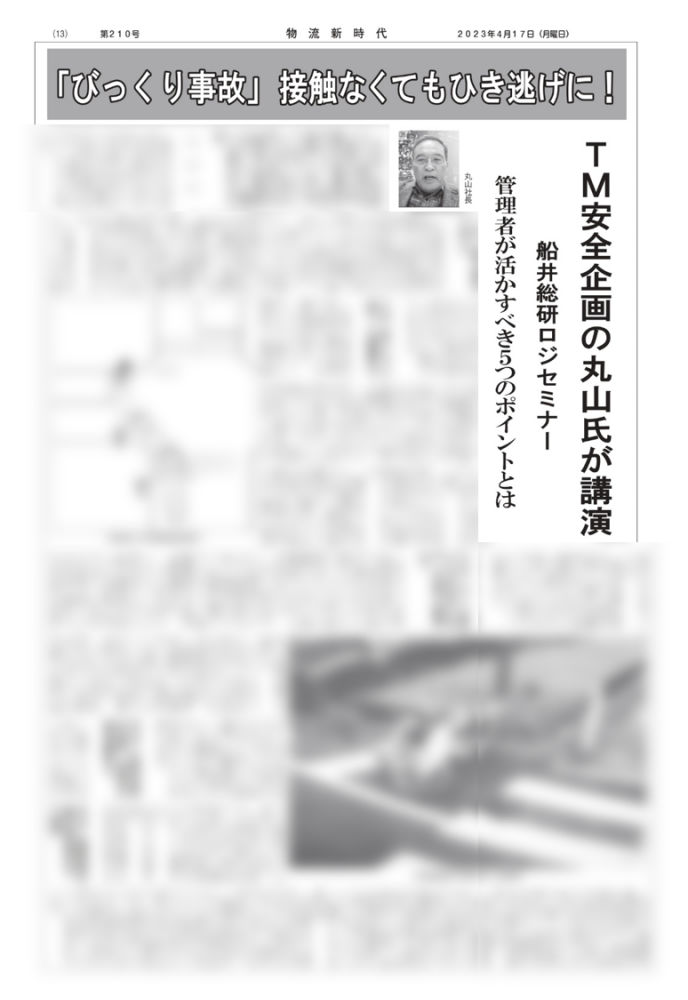 2023年4月17日(月)発刊トラック実運送業界の専門紙「物流新時代 」にて、当社が主催した「管理者の危機管理能力向上セミナー」に関する記事が掲載されました。