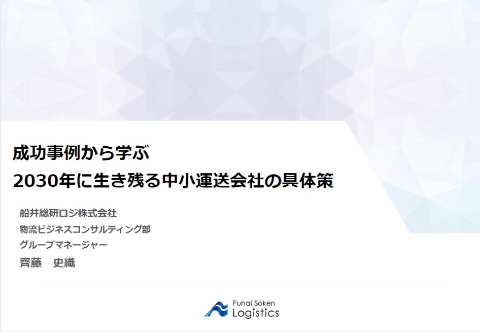2024年9月6日(金)、東京都トラック運送事業協同組合連合会様にて、船井総研ロジの経営コンサルタント 齊藤 史織が「成功事例から学ぶ2030年に生き残る中小運送会社の具体策」をテーマに講演しました。