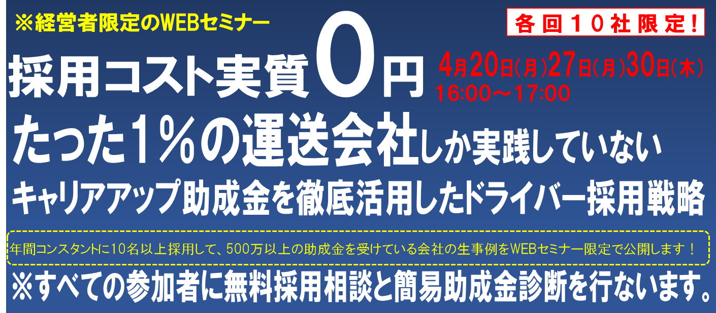 | 対象 | 年商10億円以下の運送会社の経営者限定 |