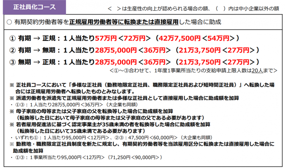 意外と知られていない、キャリアアップ助成金の正社員化の仕組みは以下です。(厚生労働省のキャリアアップ助成金のご案内より抜粋)