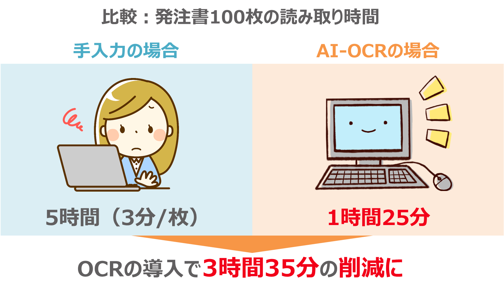 FAXの内容を転記したり、請求書の金額をソフトに入力したりする手作業を大幅に削減することができるようになります。