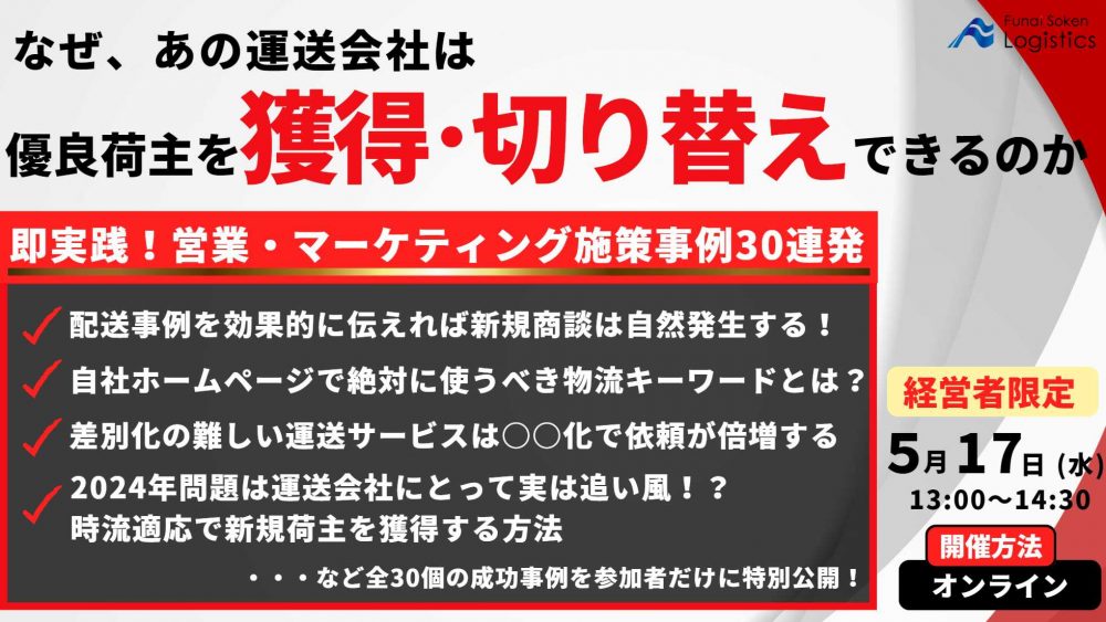 営業新手法による新規荷主の獲得事例から生き残るヒントを得ましょう。
