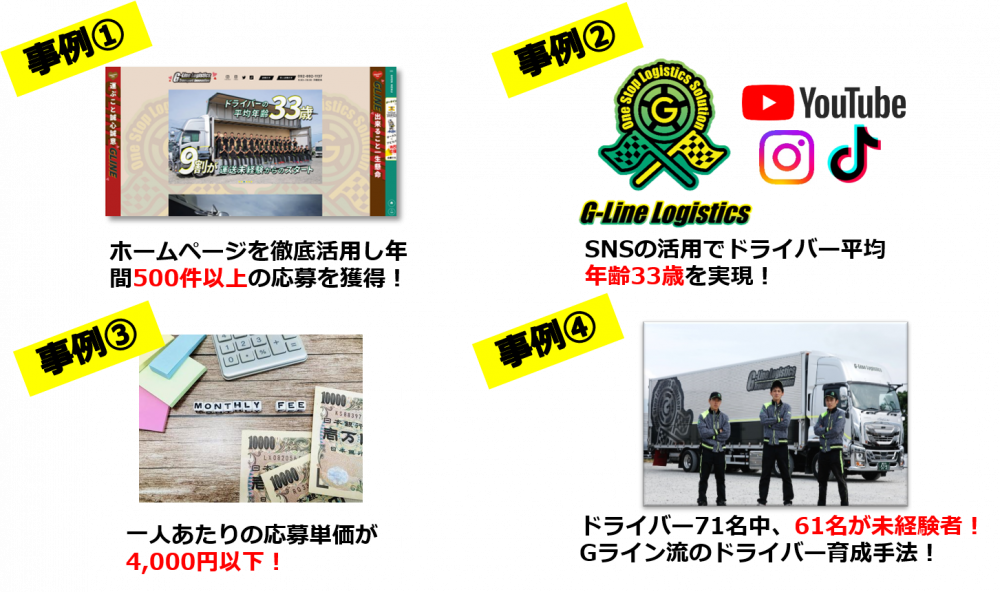 今までサポートしてきた運送会社は50社以上あり、ホームページやSNSからドライバーを集める事例を数多く持っている。