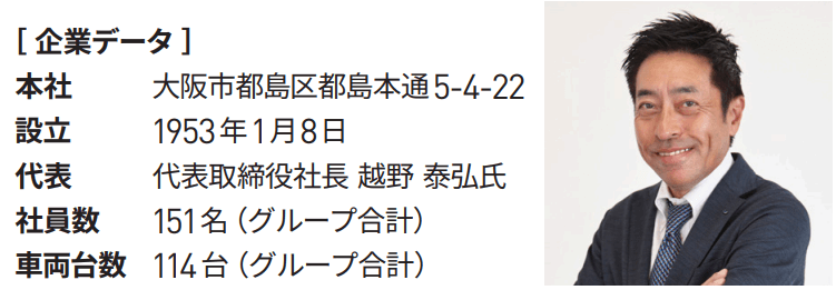 越野運送様は大阪に本社を置き、小型・中型車両を中心に事業展開されています。