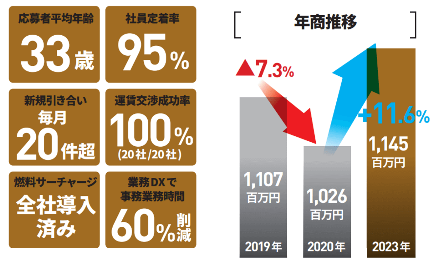 荷主は地元のメーカーや学校法人が多く、コロナ中も堅調に受注を重ね成長をしてきました。協力会社を使わず、100% 自社配送をすることを特色としており、高い品質でお客様から選ばれています。