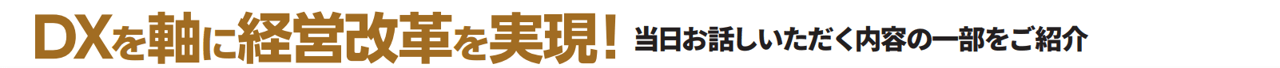 コロナ禍において社内外の改革を積み重ね、業績のV字回復に成功させました。本セミナーでは、その取り組んだ経営改革・具体的な手法についてお話しいただきます。