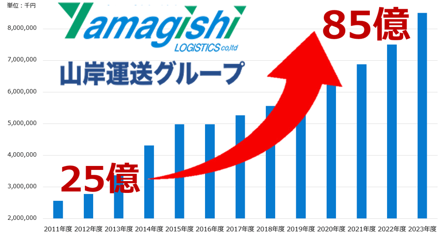 山岸運送グループは、静岡を代表する生活必需品物流のインフラ企業です。創業50周年を迎える2023年度には、グループとして年商85億を突破し業績を伸ばし続けています。