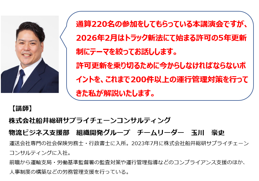 運送会社を専門とする社会保険労務士・行政書士事務所に8年間勤務した後、船井総研ロジ株式会社に入社。労働者との間に問題を抱える中小運送会社に対し、労働紛争の解決や賃金体系の変更など、人事労務コンサルティングに従事している