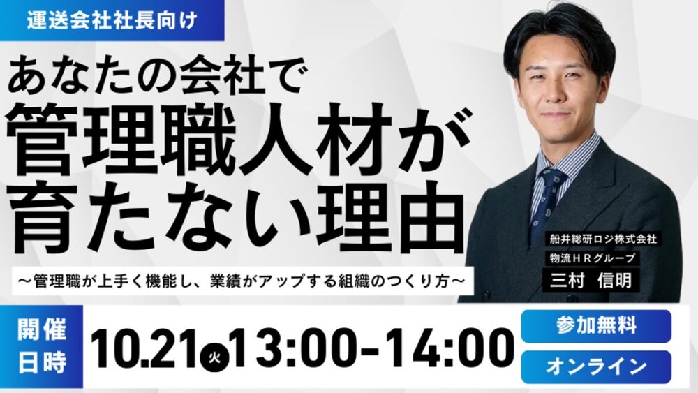 人材採用・育成・定着率UP、営業強化、協力会社・輸送ネットワーク強化などの対外業務、デジタル化推進による生産性向上、など、優先順位をつけて進めていかなければなりませんが、社長1人の力で解決することは難しく、管理者の育成・社内体制の強化は避けては通れません。