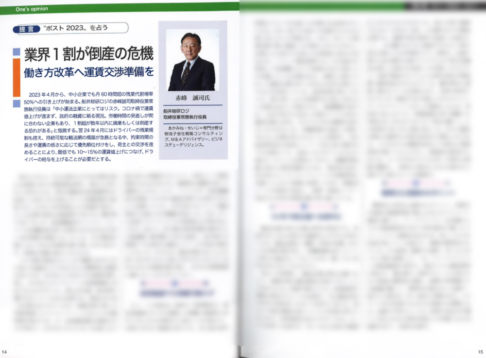 輸送経済新聞社「物流のすべて 2023年版」にて、当社コンサルタント赤峰 誠司の記事が掲載されました。