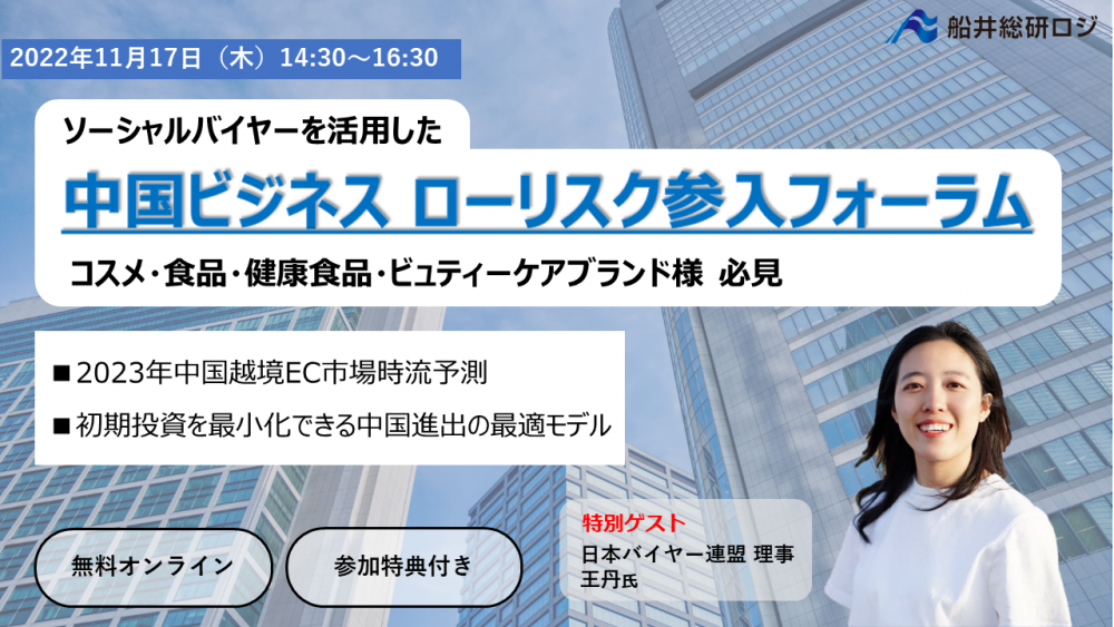 「2023年に中国越境EC市場が求めるトレンド商品を知りたい」「中国市場参入のハードルとその対処法を知りたい」 そんな自社ブランドを持つ、経営者または経営幹部の方のためのセミナーです。 2023年中国越境EC市場の時流予測や、中小企業のマイナーブランドが中国市場で成功した事例を徹底的に解説いたします。 中国越境EC市場への参入をご検討されている方は、この機会にぜひご参加ください。