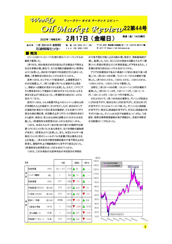 2/2~2/8のNYMEX・WTI先物市場は73.39~78.47ドルの範囲で推移した。2月9日は、前日発表の米国の原油と石油製品の予想を上回る在庫積み増し報告で、先行き需給の緩和感から4営業日ぶりに反落した。前日までの続伸で利益確定売りも多かった模様。3月限終値は前日比0.41ドル安の78.06ドル…