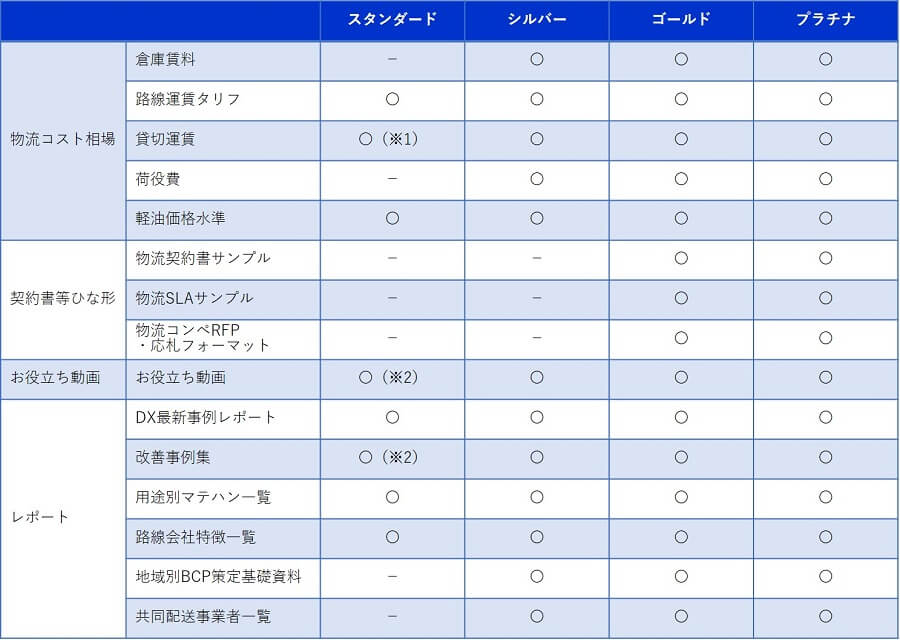 ※2:但し、物流コンペなどによる複数社分の同時評価は別料金
