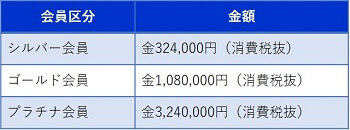(3)会員区分の変更は、上位の会員区分(プラチナ、ゴールド、シルバー、スタンダードの順に上位とする)への変更は可能とするが、下位への変更は不可とする。