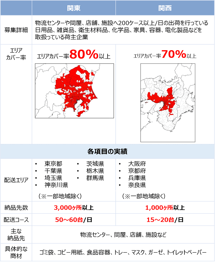 | 1.サービス概要 2.具体的な対応エリア 3.共同配送の実績および事例紹介 | |