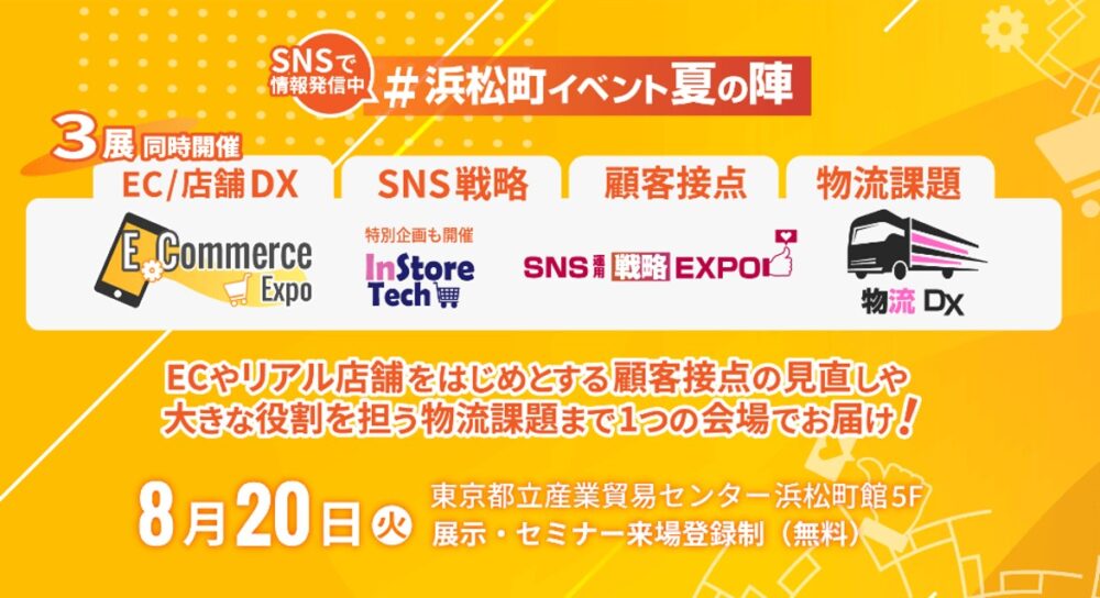 2024年8月20日(火)、株式会社ナノオプト・メディア様が主催するセミナー「3展同時開催E-Commerce Expo / SNS運用戦略Expo / 物流DX 2024」にて当社コンサルタントの田代 三紀子が講演します。