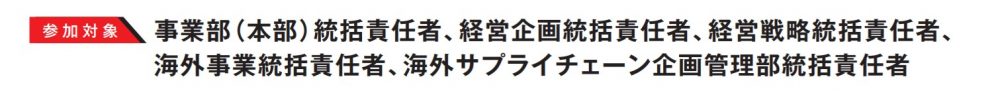 | 対象 | 事業部(本部)統括責任者、経営企画統括責任者、経営戦略統括責任者、 海外事業統括責任者、海外サプライチェーン企画管理部統括責任者 |