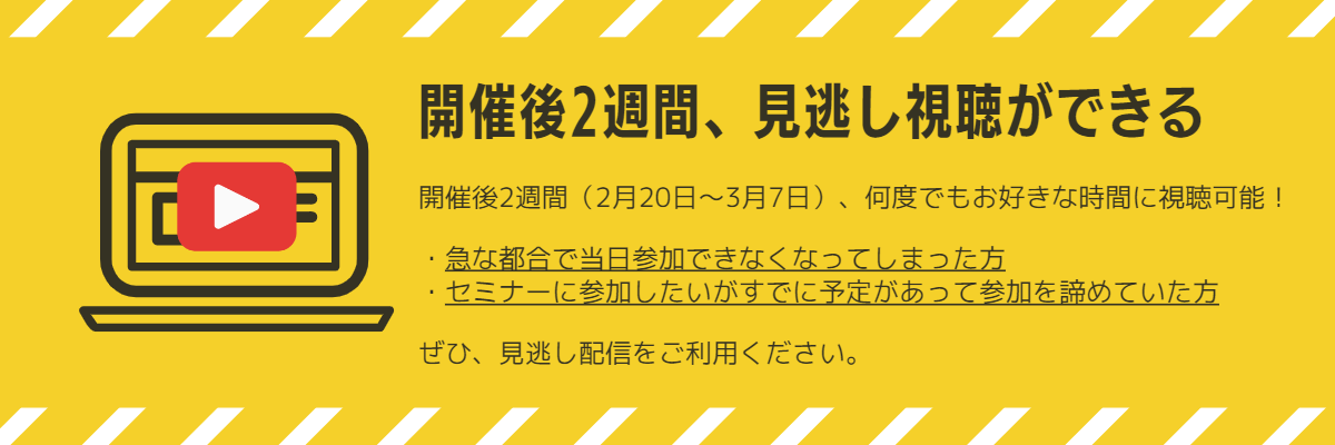 セミナー視聴後、すぐに実践できるノウハウもお伝えいたしますので、ぜひお申込みください!