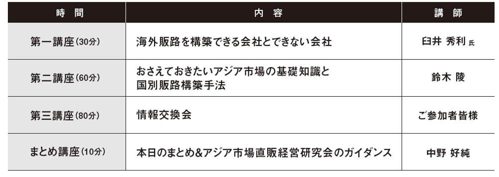 | 参加費用 | 無料 ※アジア市場研究会の説明会もかねておりますので、無料開催とさせていただきます。 |