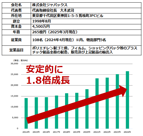 株式会社ジャパックス様は東京都千代田区に本社を構え、名古屋・大阪・福岡にも支店展開している荷主企業です。主にポリエチレン製ゴミ袋の製造を主軸に安定的に売り上げを伸ばしています。同社が物流改善を行う以前は、