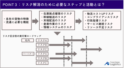 リスク所在と有無を把握し対策をとることで、これからの貴社の物流安定稼働検討の視点をお伝えします。